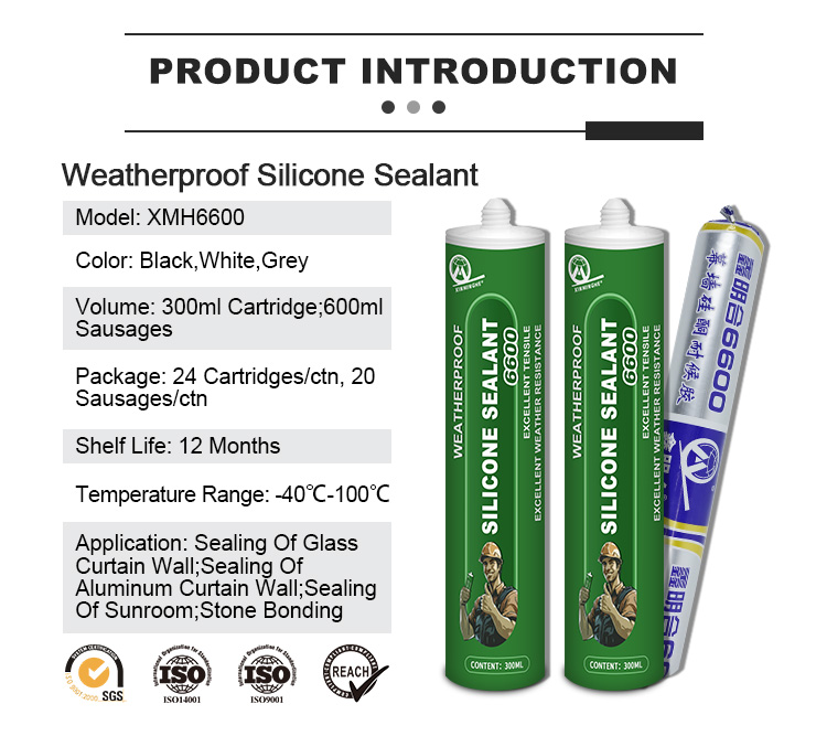 Sellador neutro XMH 6600, suave, no acético, ignífugo, antimoho, inodoro, de silicona plateada transparente para doble acristalamiento y metal. Encuentre información completa sobre el sellador neutro XMH 6600, suave, no acético, ignífugo, antimoho, inodoro, de silicona plateada transparente para doble acristalamiento y metal. Sellador de silicona resistente a la intemperie Xinminghe 6600 para muro cortina, paquete de salchicha. Fabricación de selladores, sellador de silicona monocomponente - Minghe Ruihai.